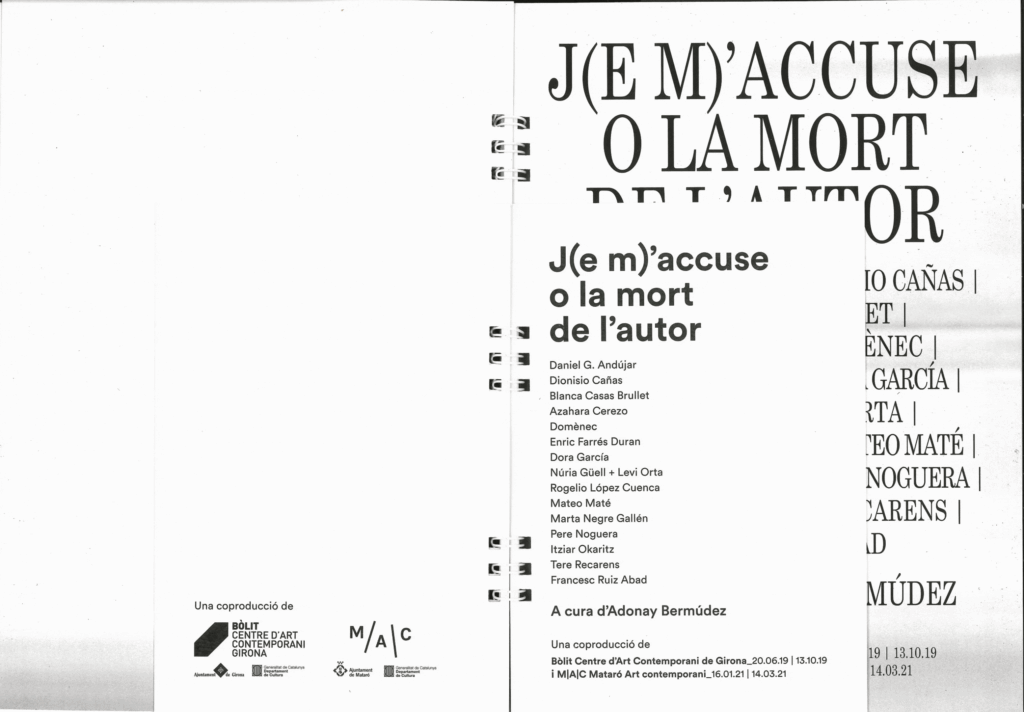 Diseño del catálogo de la exposición J(e m)’accuse o la muerte del autor del M|A|C (Mataró Art Contemporani), junto con Helena Fradera.