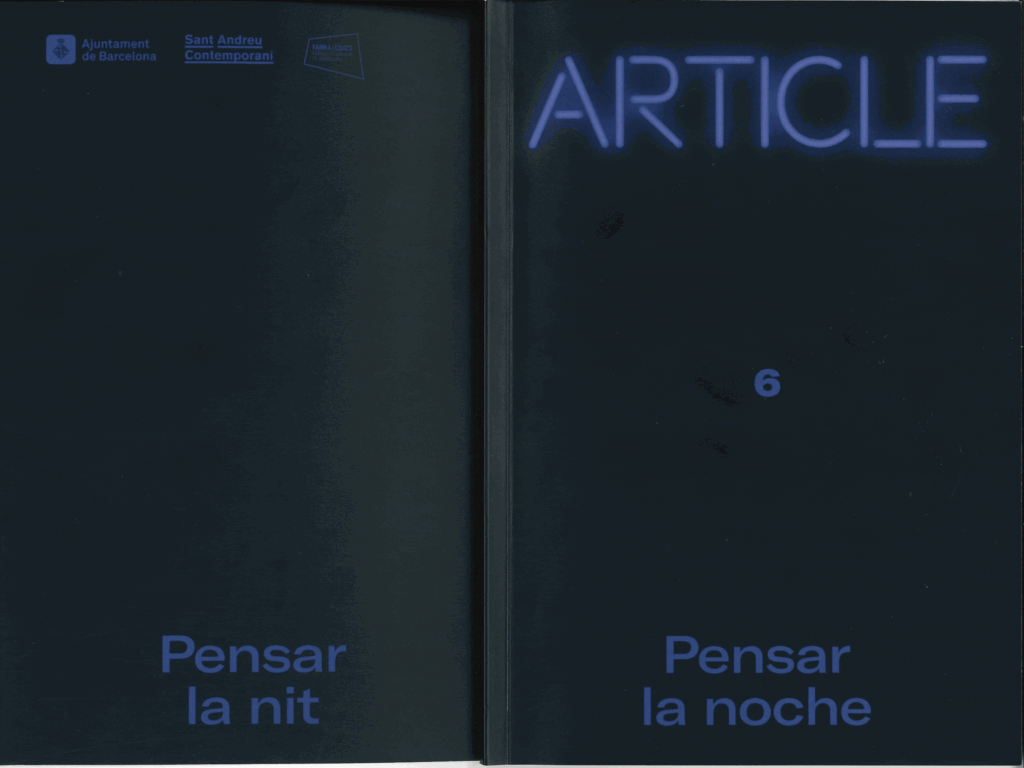 Article 6 – Pensar la nit, revista de reflexión y pensamiento crítico, editada por Sant Andreu Contemporani, con una visión de la noche desde diferentes perspectivas. Junto con Helena Fradera.